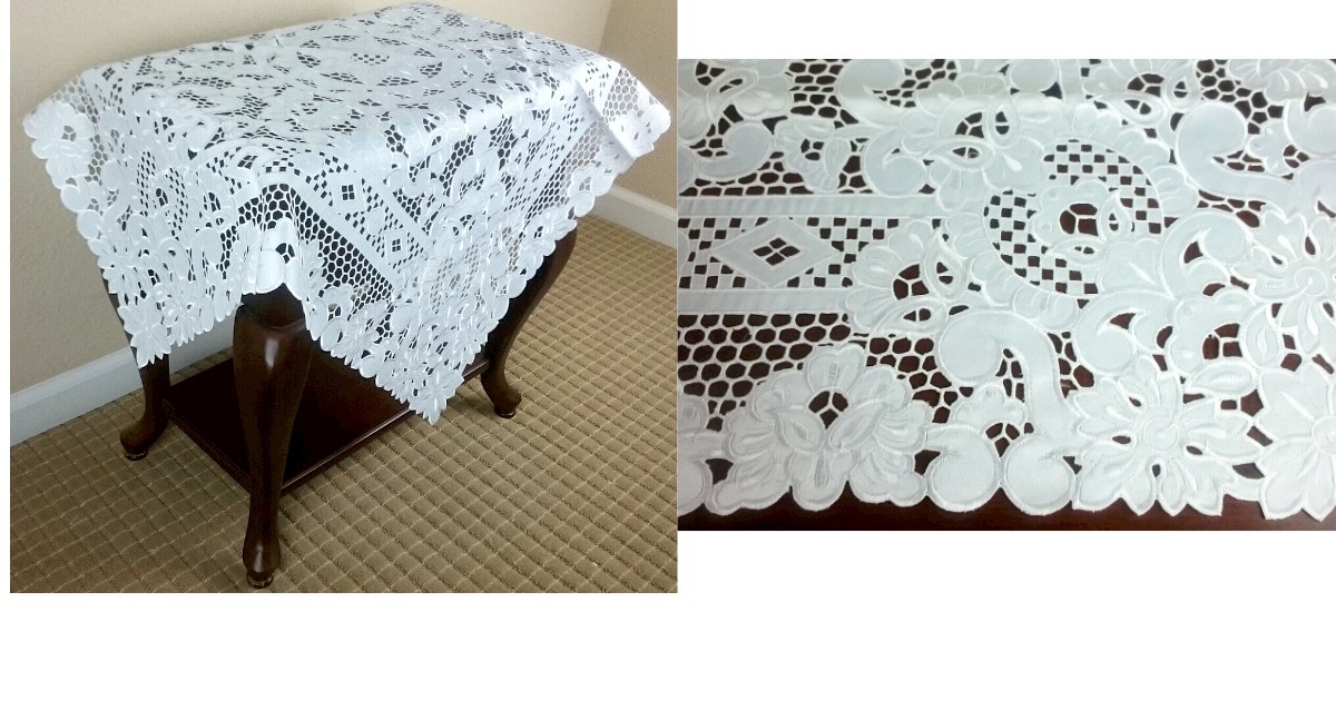 - 33" Square Polyester Cutwork Embroidery Tablecloth Coffee Side End Table White