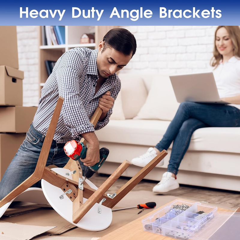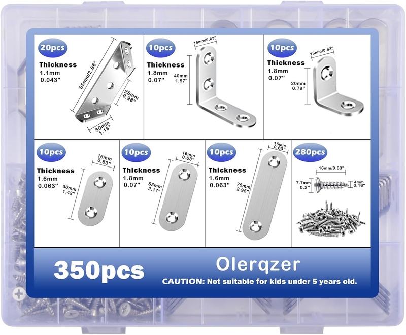 Get reliable, heavy-duty support for all your woodworking projects with this 350PCS Stainless Steel Furniture Bracket Kit. Designed for strength and versatility, this set includes L brackets, corner braces, flat plates, and 280 screws?all neatly organized in a compartmentalized storage box.