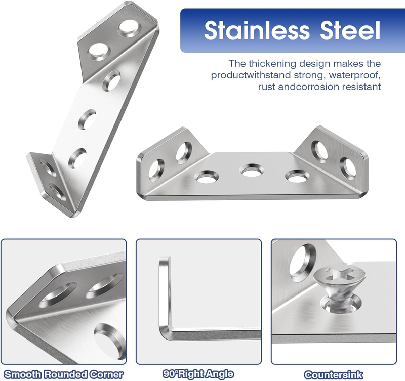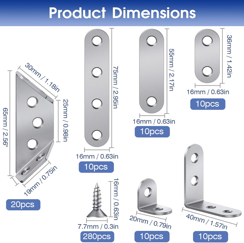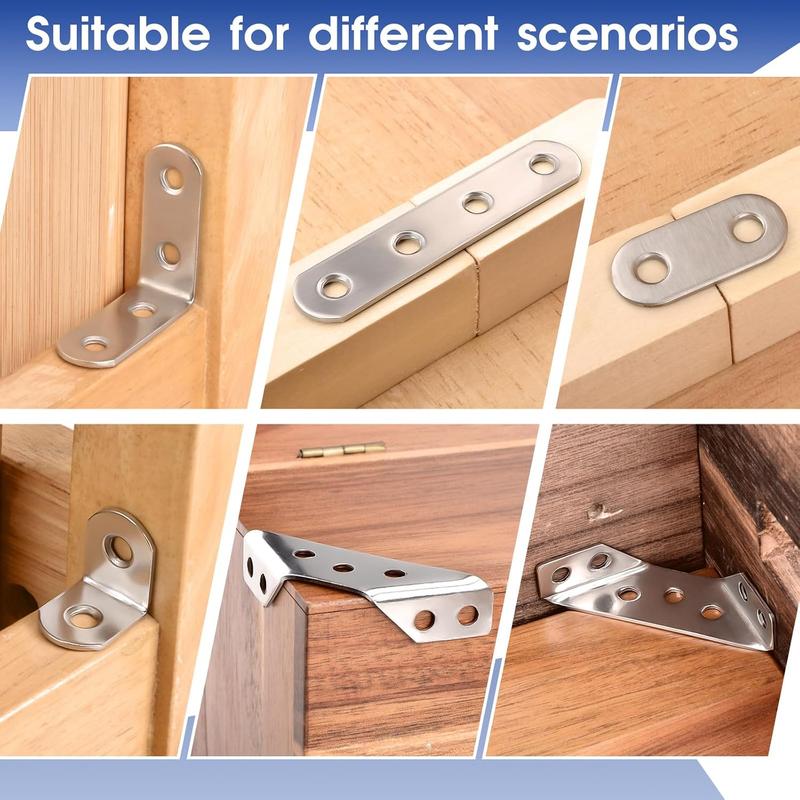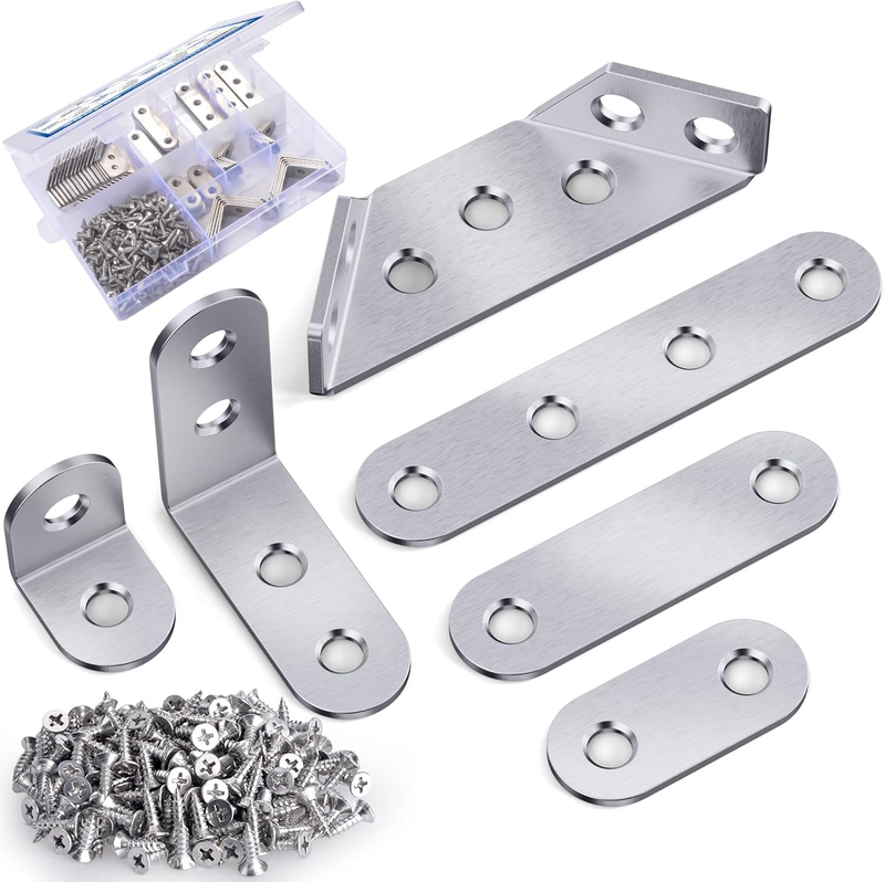 - 350PCS Stainless Steel L Brackets & Corner Plates w/ Screws for Wood Repair