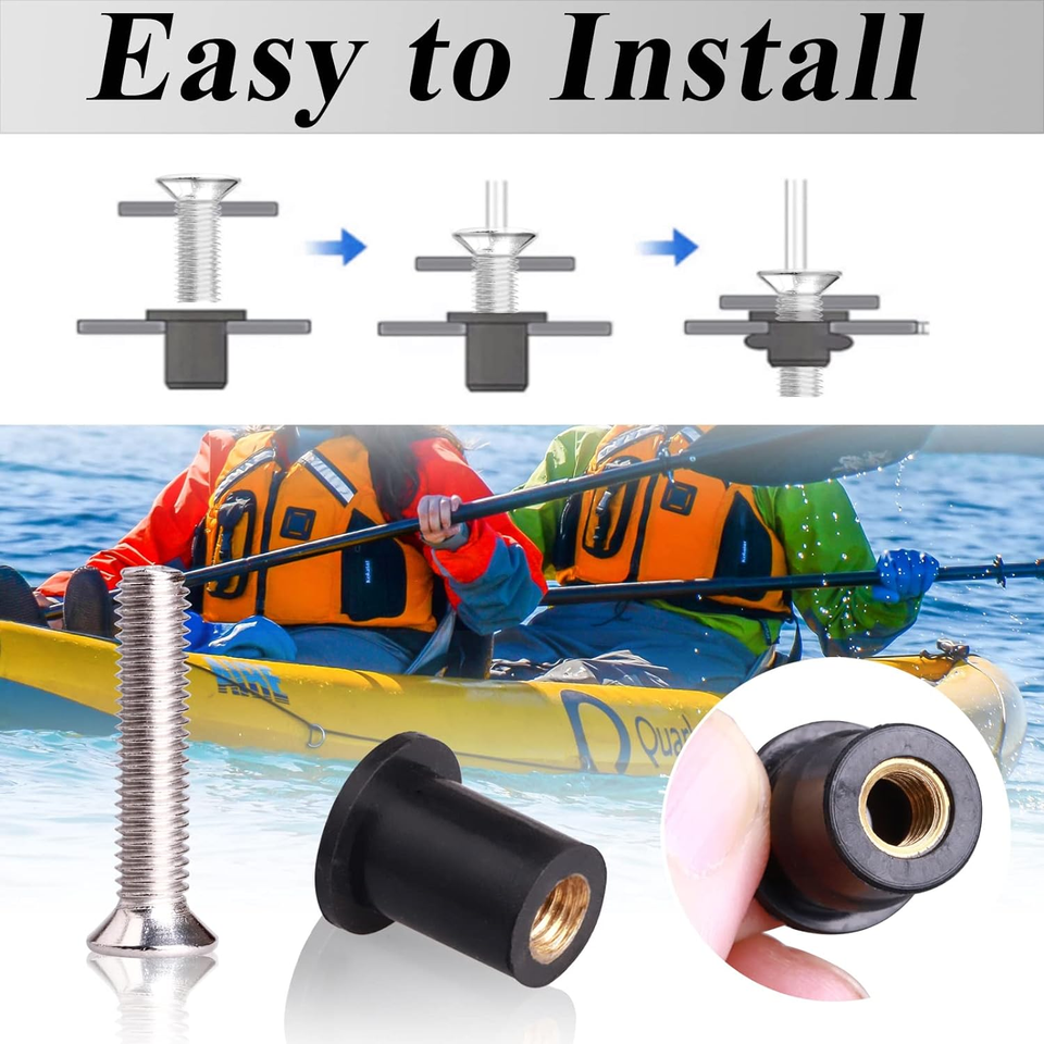 - 36 Pairs Well Nut Kit M4 M5 M6 | Rubber + SS Screws | Boat Kayak Motorcycle Use