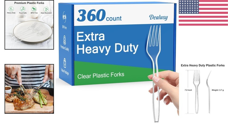 - 360 Bulk Heavy Duty Clear Plastic Forks for Parties - Durable & Reliable