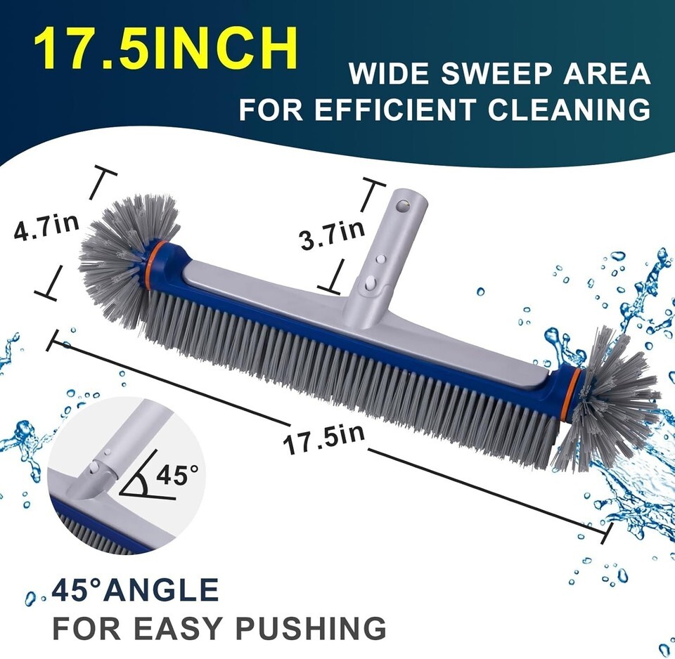 Wide Sweep Area: Measuring 17.5 inches, this brush offers an expansive surface area for effective cleaning of pool walls and floors.
