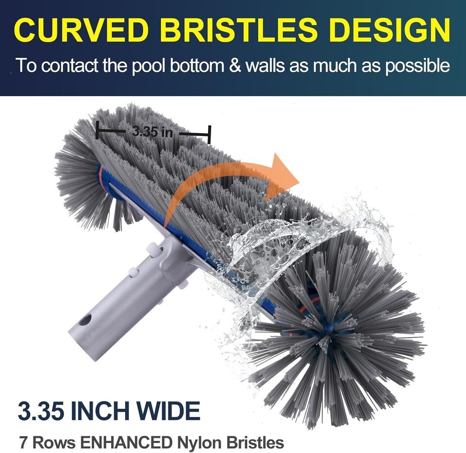 Enhanced Curved Bristles Design: Specifically crafted to maximize contact with the pool bottom and walls for an immaculate clean.