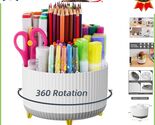 360-Degree Rotating Desk Organizer ? 5-Compartment Utility Caddy in White+Grey
