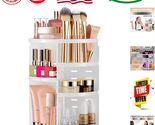 - 360-Degree Rotating Makeup Organizer with Adjustable Shelves - Large Capacity