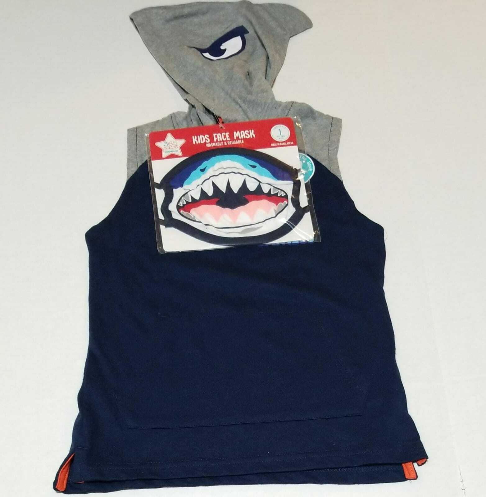 365 Kids Face Mask Washable & Reusable Raglan Muscle Hoodie Size 8 Color Navy