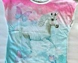 - 365 Kids Girls Sleeveless Tee Shirt Size 7 Unicorn With Butterflies Pink Blue