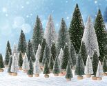 - 36PCS Bottle Brush Christmas Trees Multi-Size Table Decor with Wood Base