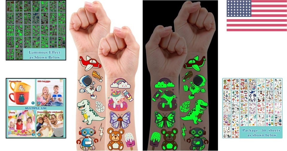 380 PCS luminous temporary tattoos designed uniquely for kids.
