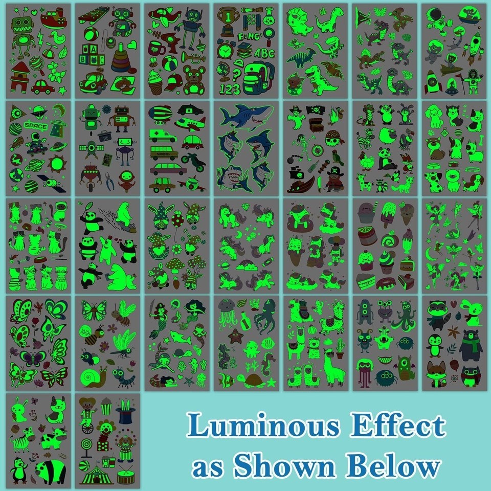 380 Mixed Styles Luminous Temporary Tattoos for Kids
