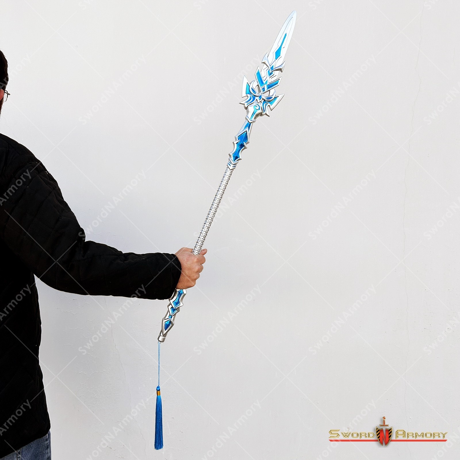 39? Silver Blue Fantasy Spear Staff Foam Anime Video Game Cosplay Costume Prop