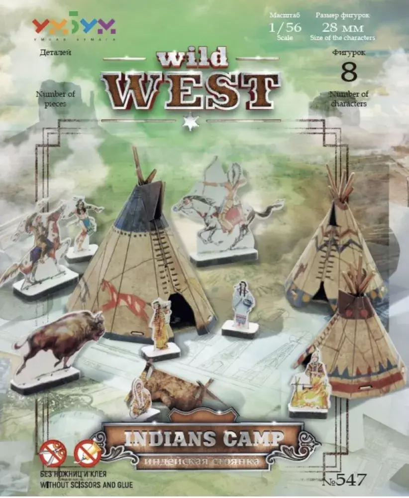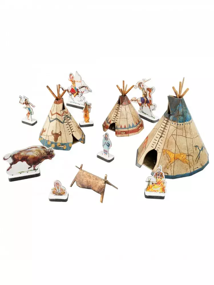 This detailed 3D cardboard model kit lets you build a miniature Native American camp — complete with teepees, buffalo, and brave warriors. It’s part of the Wild West Series, designed for kids and adults who enjoy creative DIY projects and historical dioramas.