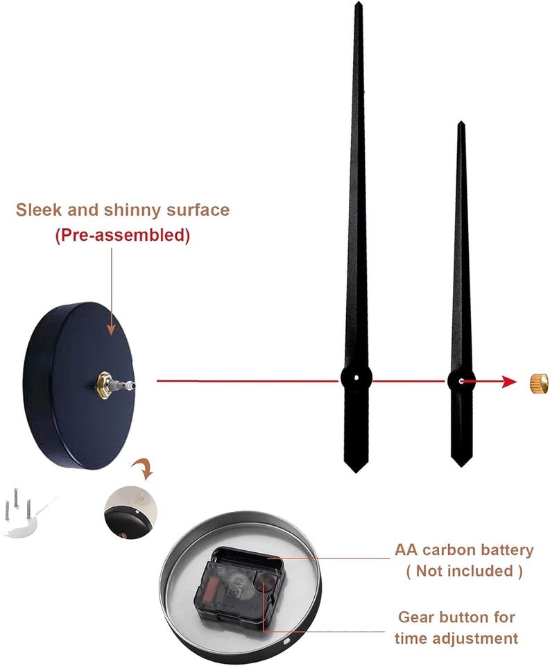 - 3D Clock Hands, DIY Large Clock Movement Mechanism with 12 Inch Long Spade Hand,