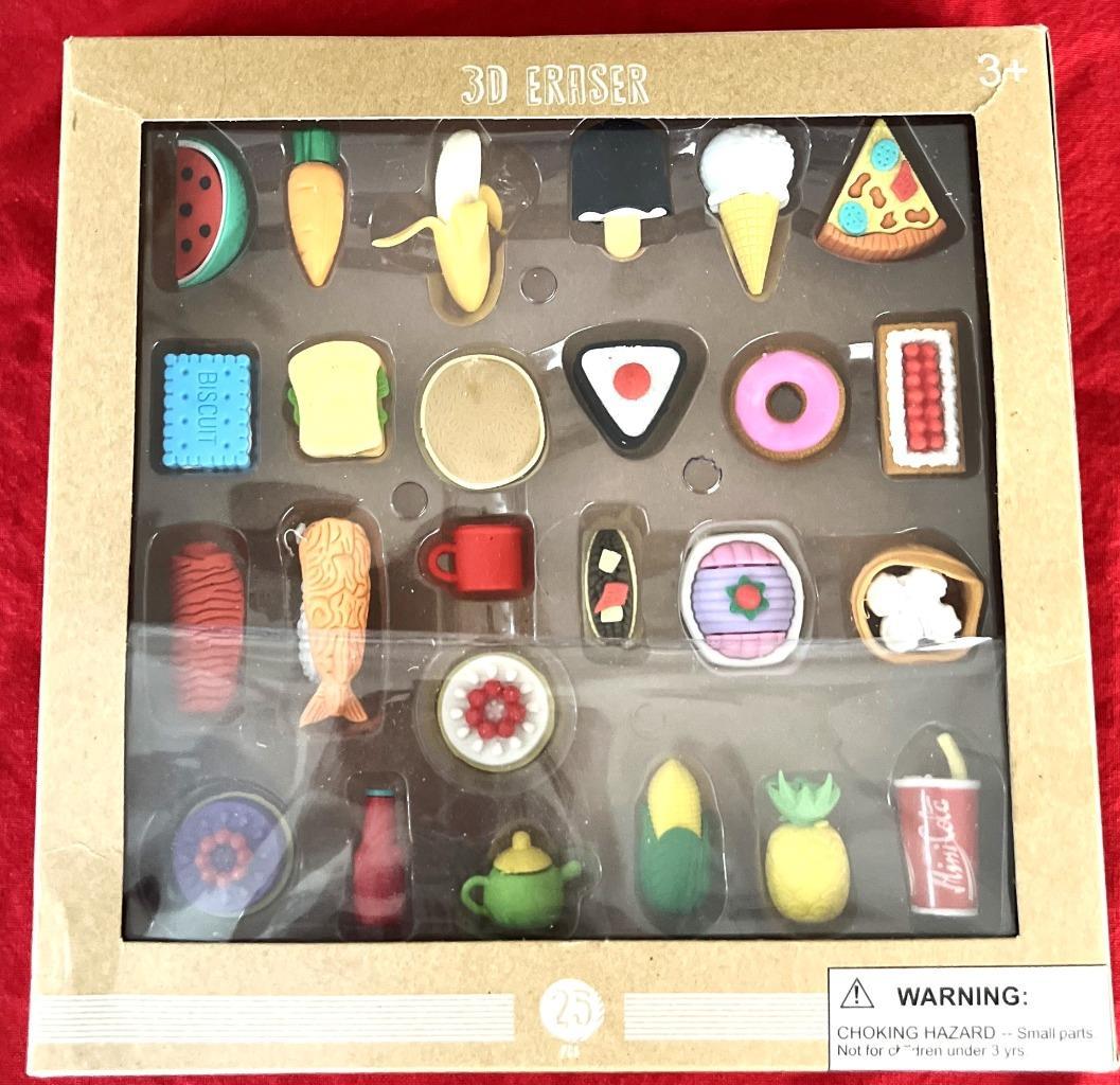 - 3D Eraser Set of 25 Different Food Assortment Original Box
