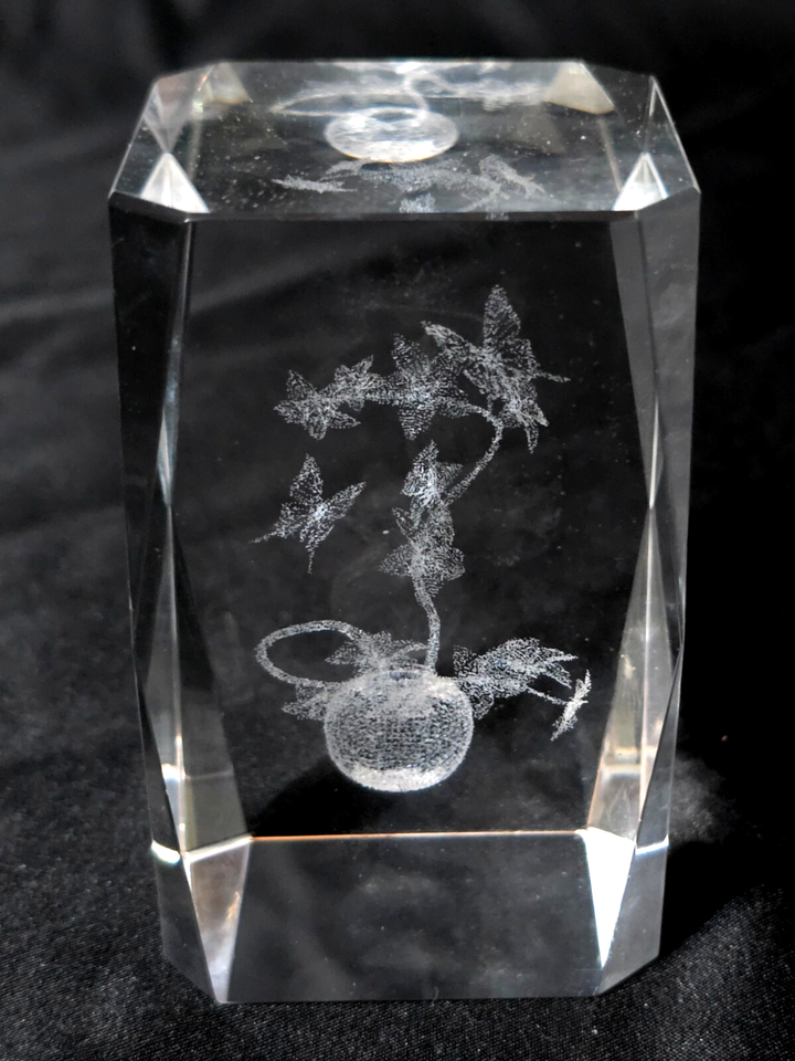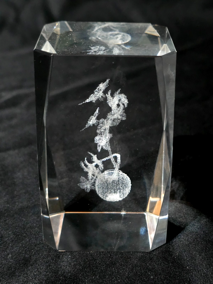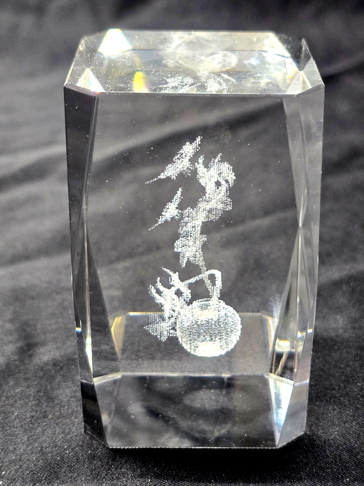 Nice 3D laser etched crystal paperweight in excellent condition. Great clarity, no