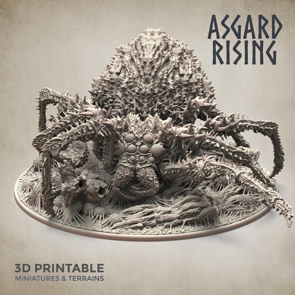 - 3D Printed Asgard Rising Ancient Spider Queen with Palanquin 32mm D&D