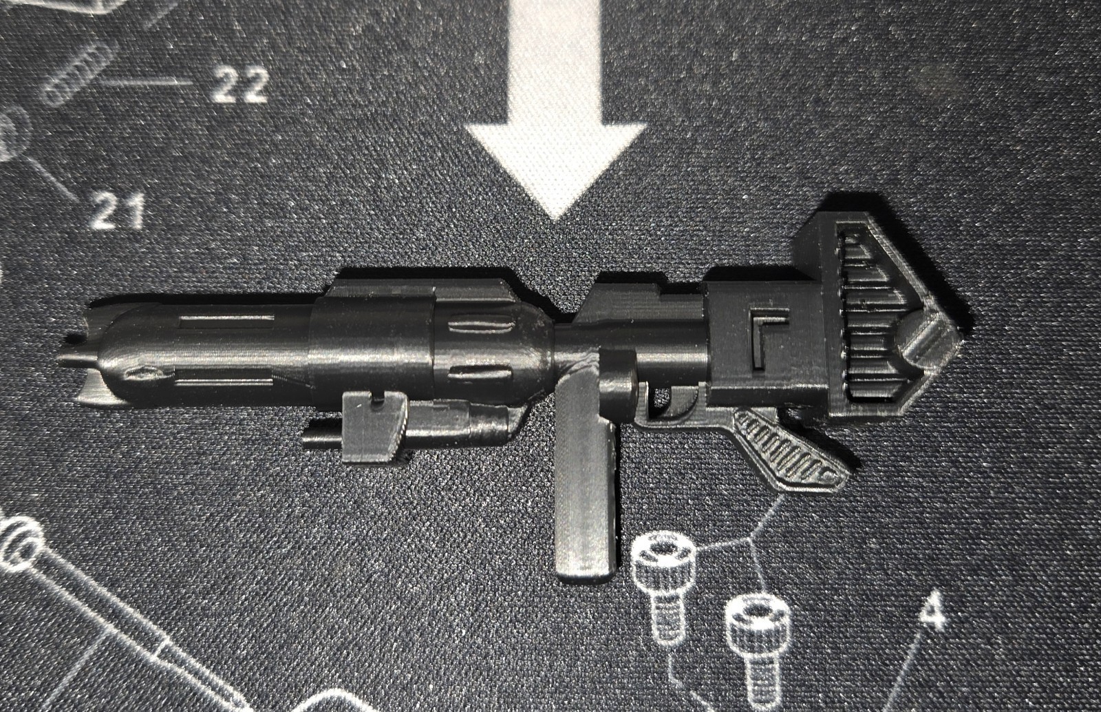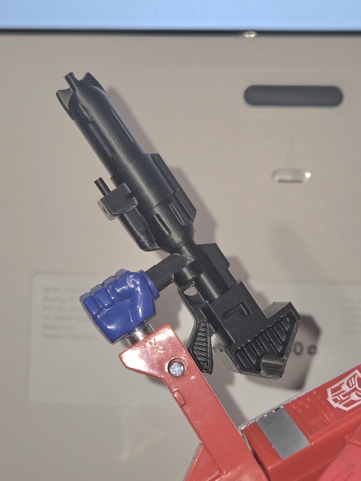 This listing is for a custom 3D printed gun for a G1 Optimus Prime with a 5mm port that I designed in Blender and Bambu Studio and then printed on my Bamboo Labs X1C 3D Printer.