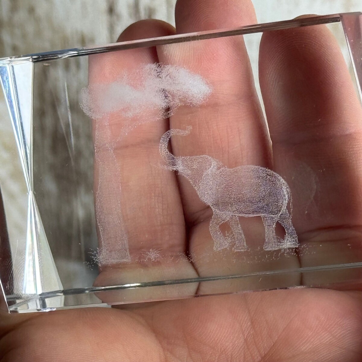 - 3D laser-etched Crystal Elephant Tree Engraved Paperweight Desk Decor Accent
