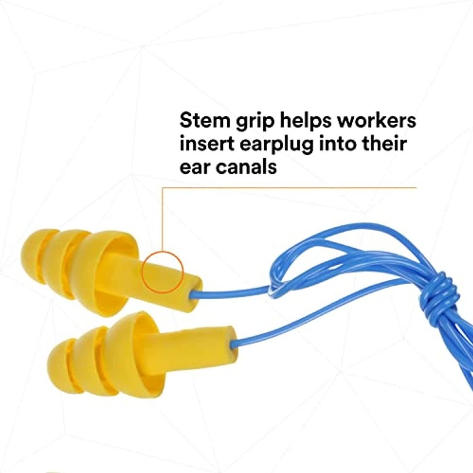 -- Comfortable multi-flange shape (view larger). The 3M E-A-R UltraFit corded earplugs features a proprietary, premolded, triple-flange design that fits comfortably in most ear canals. These durable, corded reusable earplugs are easy to use again and again, reducing waste. Push-to-fit products provide in-ear comfort and convenience, with the hearing protection you expect from 3M. They have a Noise Reduction Rating (NRR) of 25 dB, CSA Class AL. Comfortable multi-flange shape. Hearing Protection Style Pre-molded/reusable Material Elastomeric Polymer Mission Type Aircraft, ships, vehicles Operation Type Facility safety, maintenance, repair operations, overhaul Recommended Application Assembly, blasting, cleaning, demolition, electrical, facility maintenance, grinding, machine operations, painting, sanding, welding Recommended Industry Automotive, construction, food beverage manufacturing, manufacturing, metal production fabrication, military maintenance, repair and operation (mro), mining, oil gas, pharmaceutical, transportation Shape Multi-flange Size One size fits most Why Use Hearing Protection?Hearing loss due to noise is almost entirely preventable by judicious use of hearing protection. To find out which hearing protection products are best for you, try different devices from the wide variety available today. Be sure to carefully read the instructions ? hearing protection must fit properly and be worn correctly to do the job. Hearing protector effectiveness is specified by a Noise Reduction Rating (NRR), typically ranging from 15 to 35 decibels. In practice, the protection that normally can be achieved is about 10 to 20 decibels. The more carefully you fit and wear hearing protectors, the higher your protection will be. Why 3M Safety?Doing it right means doing it safely. That means choosing the right safety products before the project begins. With a full portfolio of personal protection and home safety products, 3M Safety Products are designed to help keep DIYers and professionals protected in and around the home. We strive to give consumers the confidence in knowing they are prepared with reliable products from a trusted brand, so they can stay focused on the task at hand, not on their safety products.340-4004 EAR Ultrafit Corded Earplugs, 100-PairAt a GlancePush-to-fit style for easy and hygienic fitSingle size fits comfortably in most earcanalsProprietary, premolded, triple-flange earplug design inserts easilySoft polymer is washable and reusableNoise Reduction Rating (NRR) of 25 dB, CSA Class ALMade in USA Product Description The 3M E-A-R UltraFit Corded Earplugs feature a ?no-roll?, triple-flange design that provides quick, clean, and comfortable hearing protection. Simply hold the stem and push the earplug into the ear. The tip stays clean even if hands are dirty or gloves are worn. The soft polymer earplugs are washable and reusable so they don?t need to be replaced as often, reducing waste and lowerings costs. Poly bag keeps earplugs clean prior to use. Recommended applications include assembly and mechanical, chipping, chiseling, cleaning, drilling, furnace operations, grinding, heavy equipment operations, machining, metal repair, painting, pouring/casting, power fastening, riveting, sanding, sawing and welding. These earplugs are commonly used in the following industries: construction, general manufacturing, mining, oil and gas, and transportation. These soft polymer earplugs have a Noise Reduction Rating (NRR) of 25 dB and are test compatible with the 3M E-A-Rfit Validation System. Not only is noise present in our daily routines and recreational activities, but millions of Americans work in hazardous noise on a daily basis. Estimates from the National Institutes of Health suggest that approximately 15 percent of Americans (26 million people) between the ages of 20 and 69 have high frequency hearing loss due to exposure to noise at work or during leisure activities. Hearing loss due