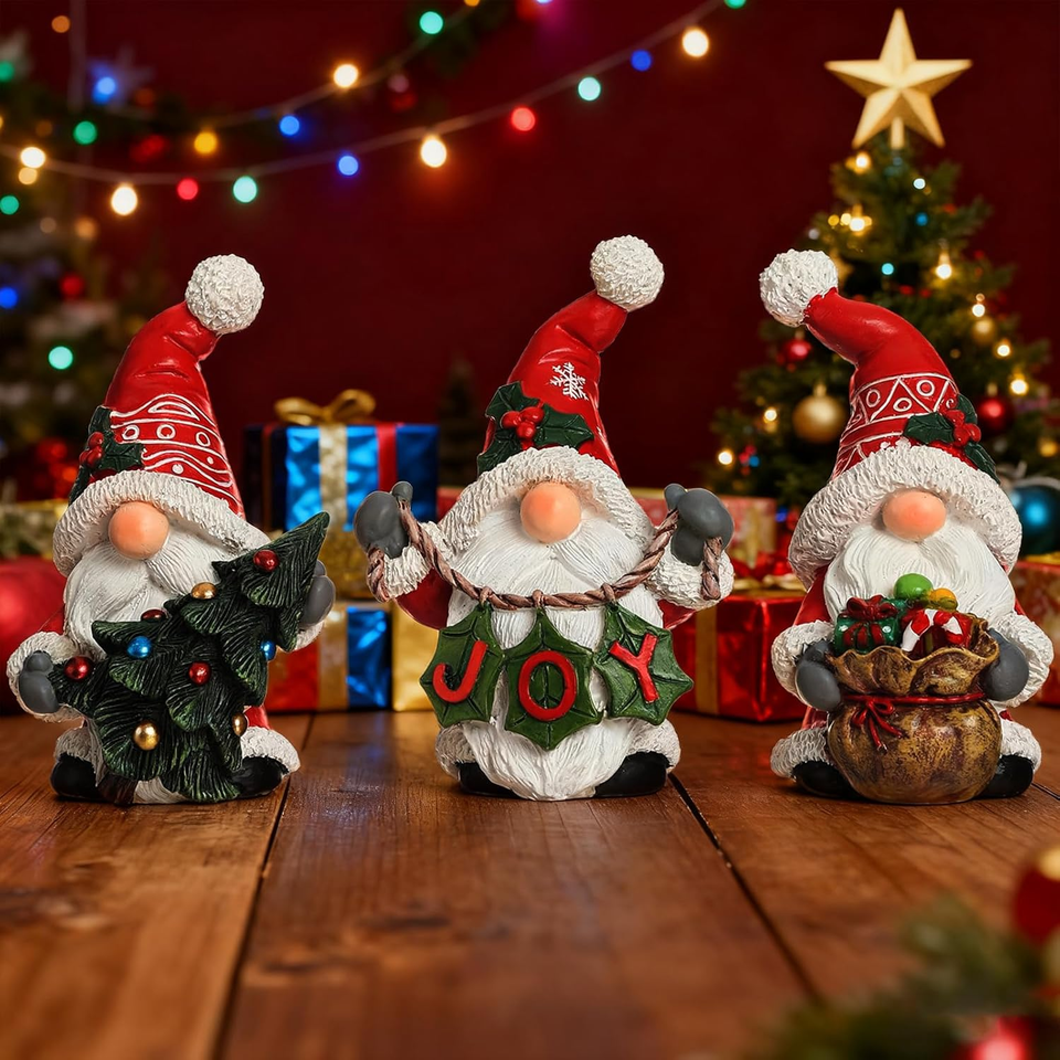 - 3PCS Resin Christmas Gnomes Statues Handmade Holiday Scandinavian Gnome Ornament
