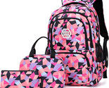 - 3Pcs Geometric Print Girls Backpack and Lunch Bag Set for Kids Elmentary Middle
