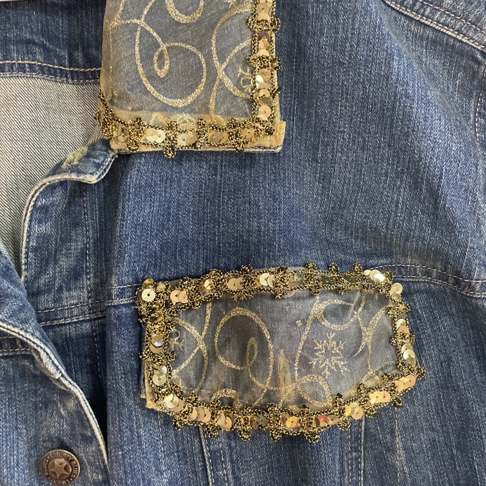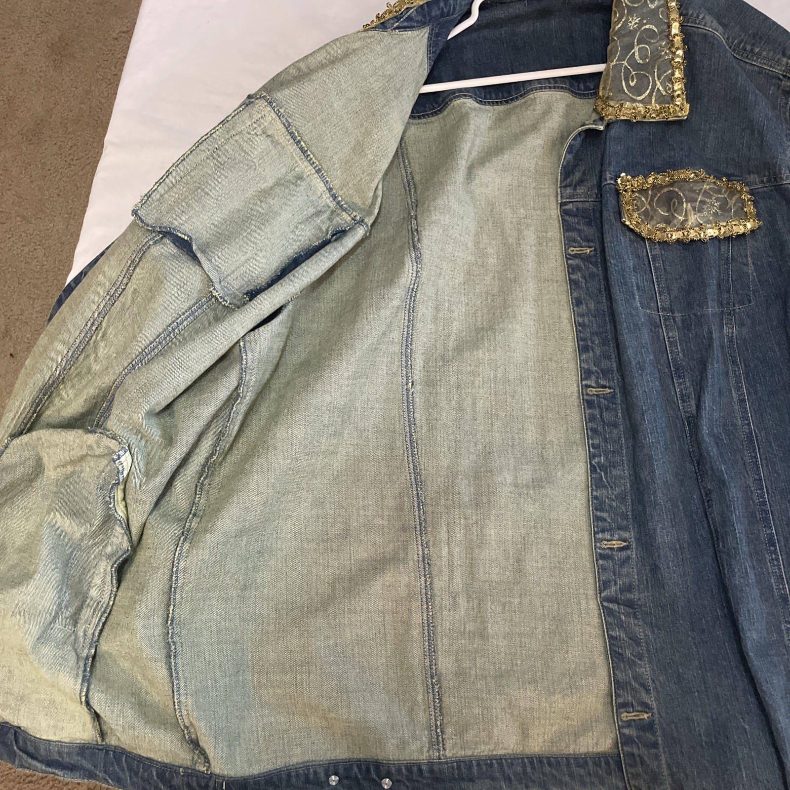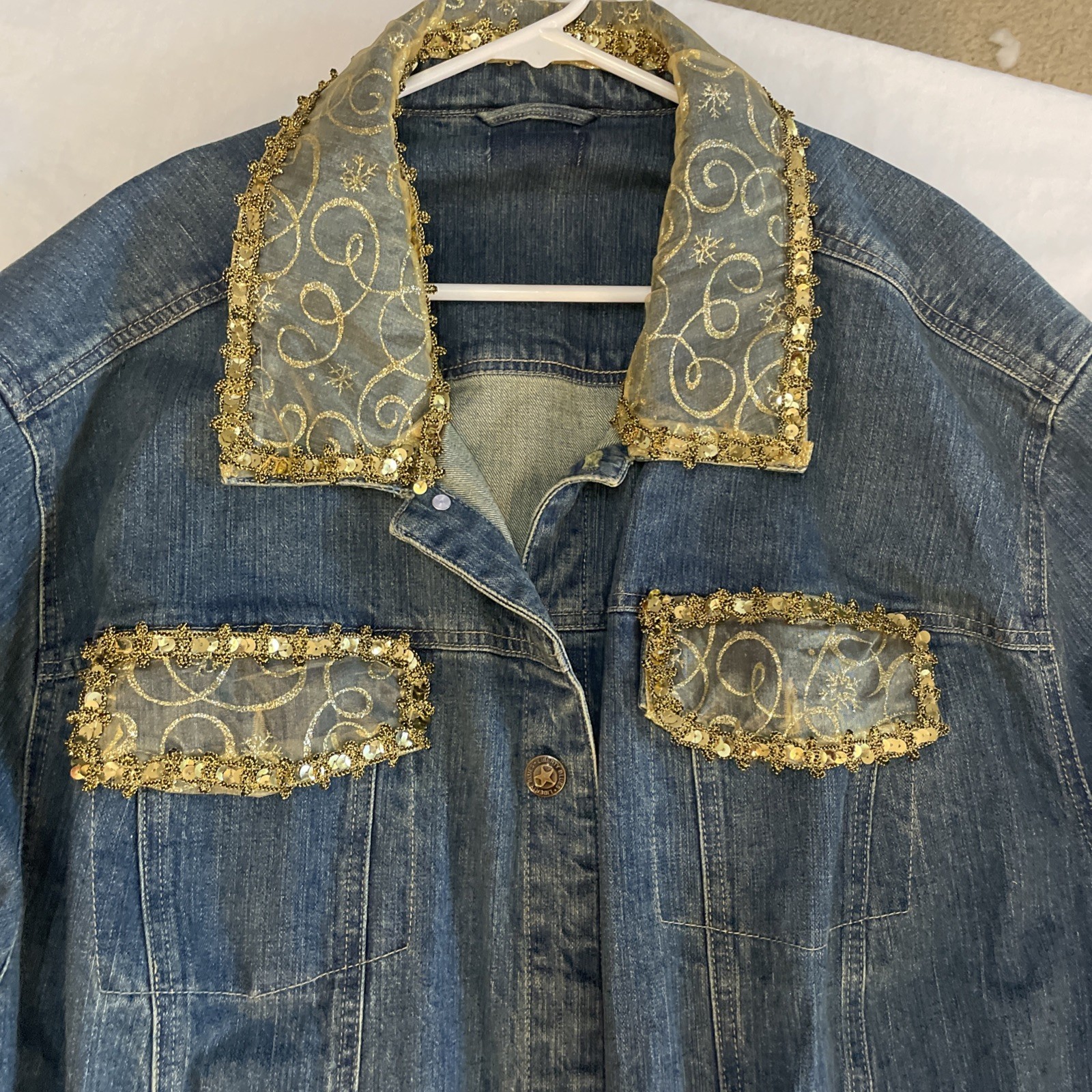 3X TALL Denim Jacket Women’s Blue Jean Button Up With Gold Sparkly Accent