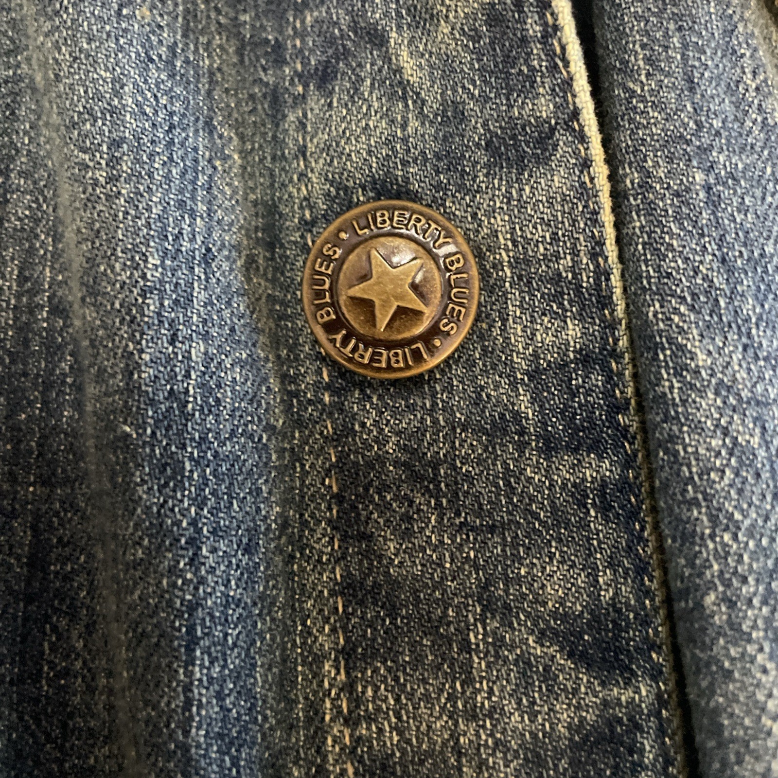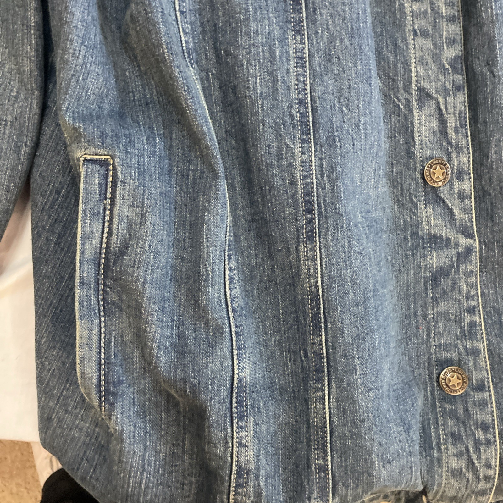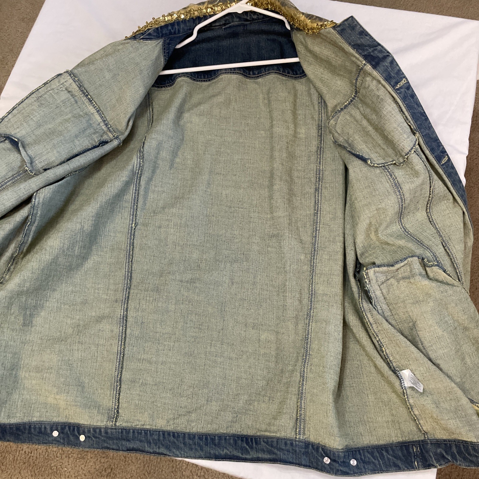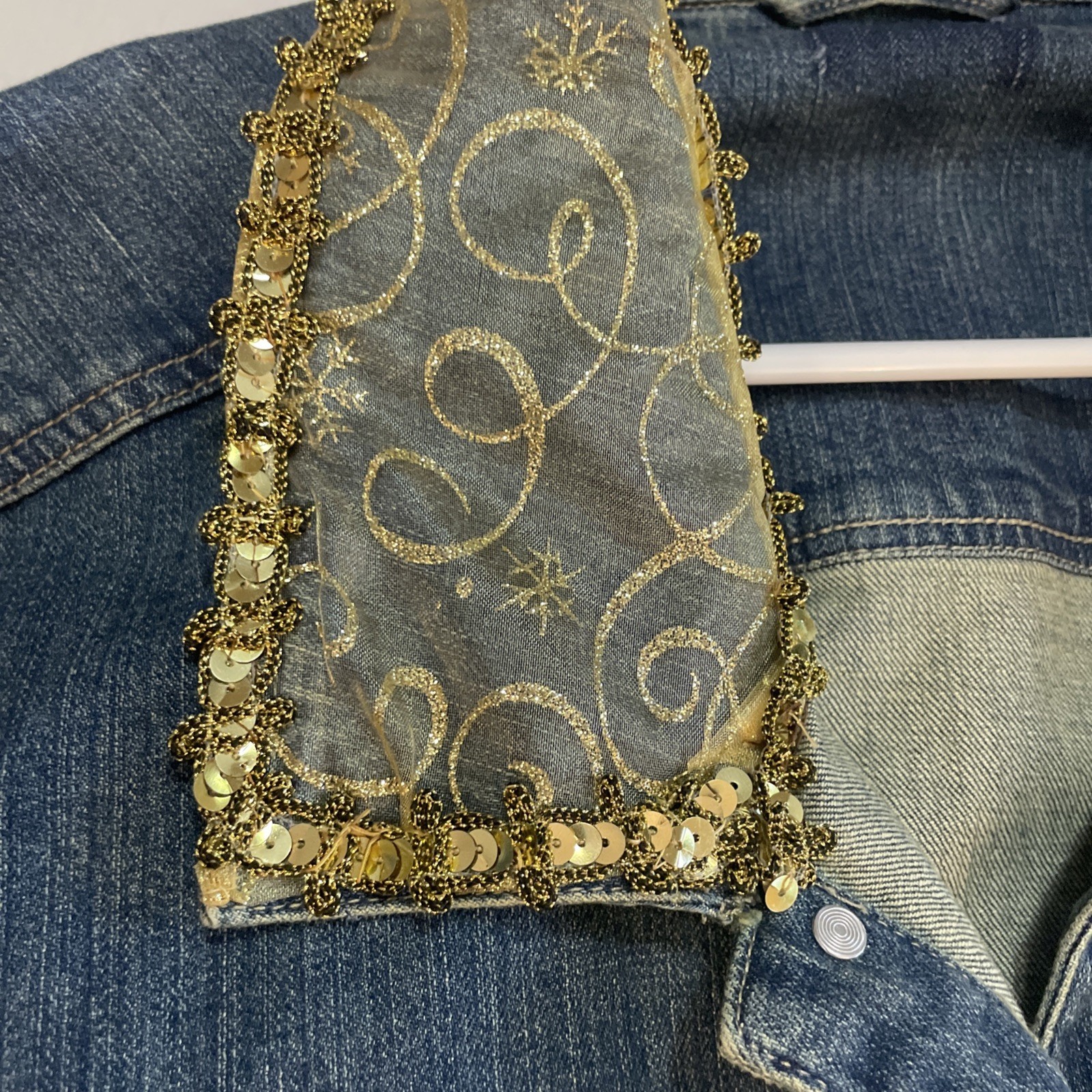 3X TALL Denim Jacket Women’s Blue Jean Button Up With Gold Sparkly Accent