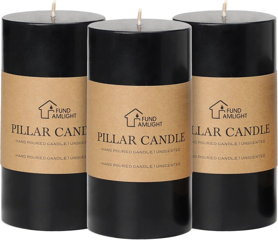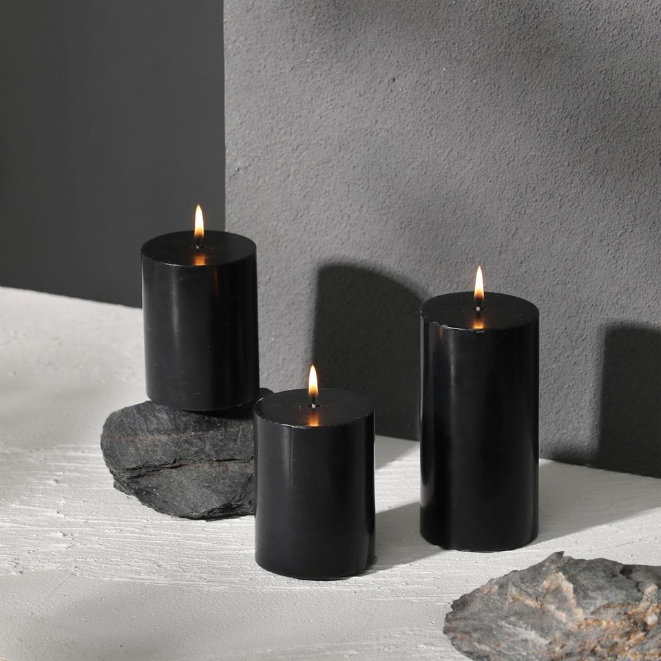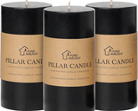 - 3X6 Inch Black Pillar Candles Set of 3 - Decorative Unscented Pillar Candle