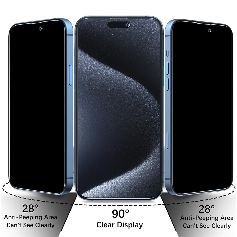 - 3x Protector de Pantalla Vidrio Templado Privacidad Para Apple iPhone 15 Pro Max