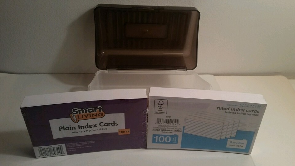 3x5 Index Card Box New with 100 Unruled Index Cards and 100 Ruled Index Cards...