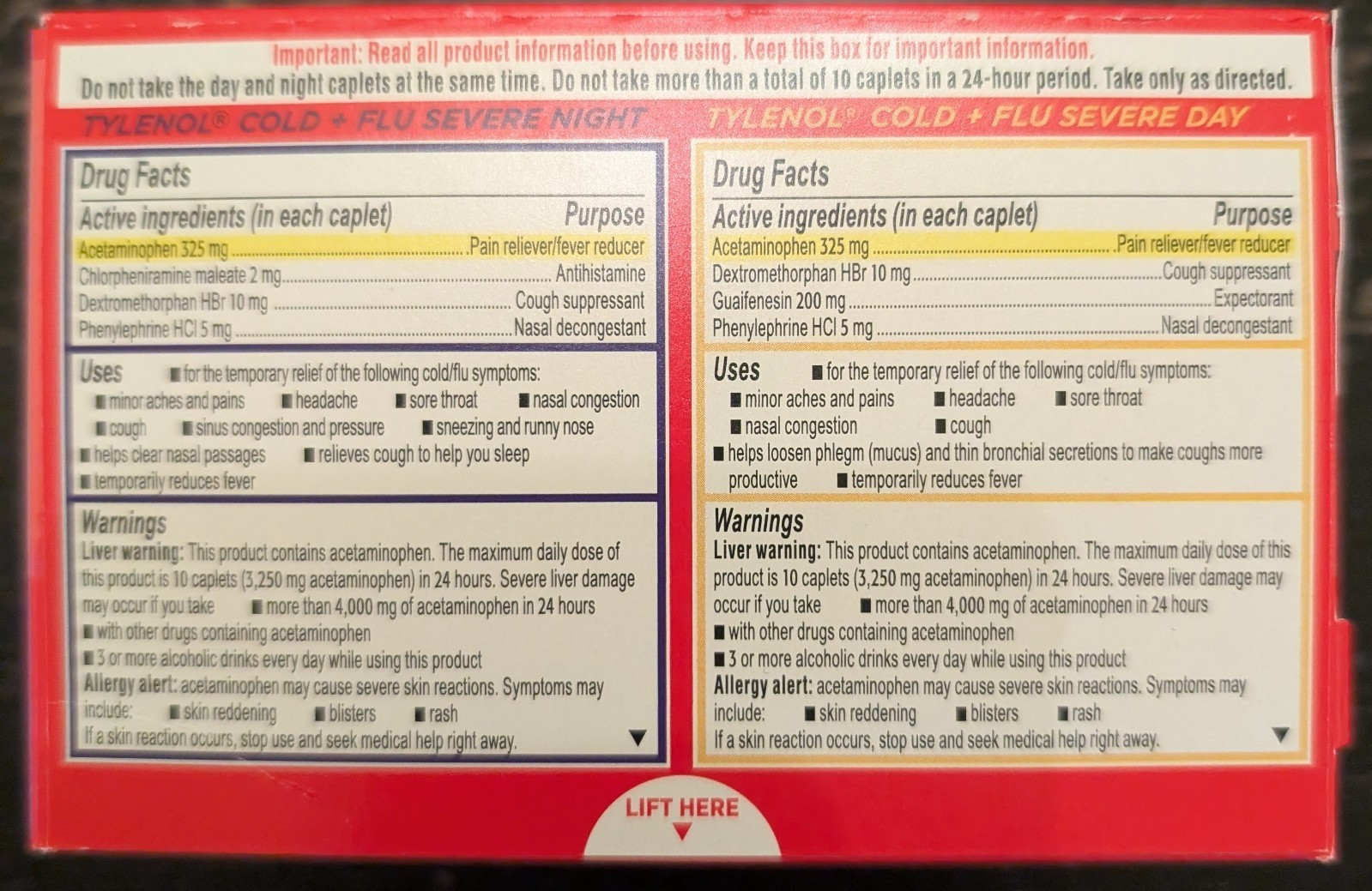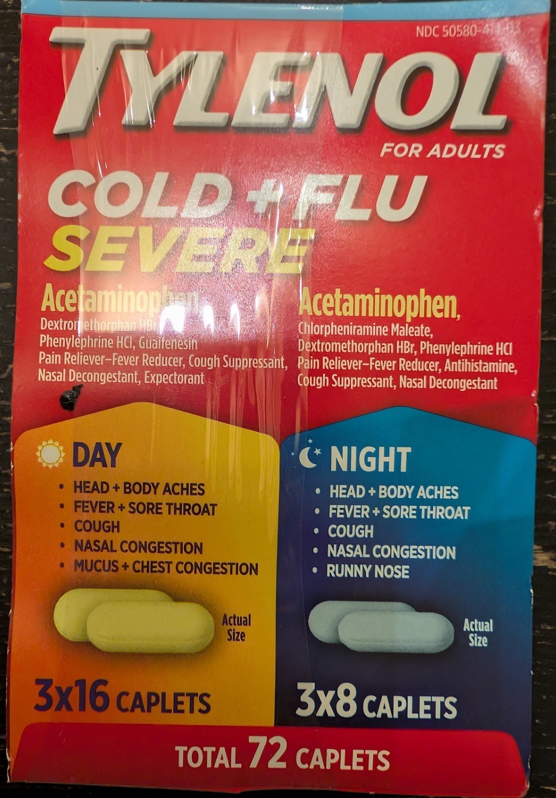 - 3xTYLENOL Cold and Flu Severe Adults 16 Ct Day & 8Ct Night Caplets Exp: 12/2025