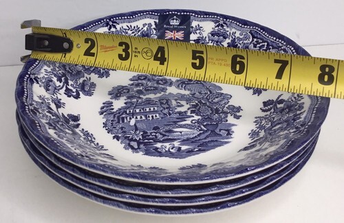 - 4 Blue Soup ~ Cereal ~Salad Bowls 8" Royal Wessex Queens Churchill Tonquin New