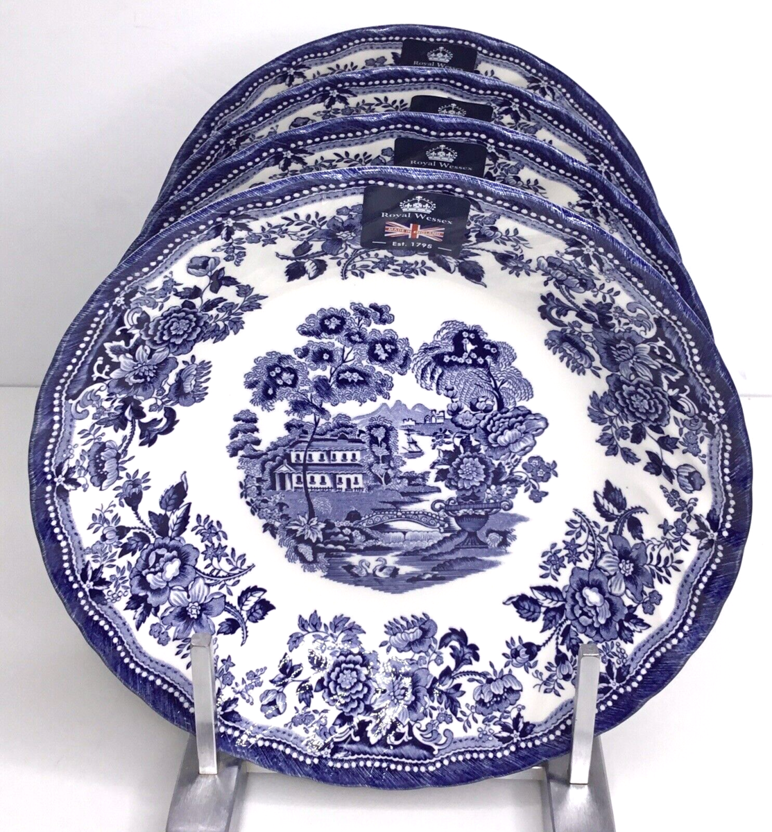 4 Blue Soup ~ Cereal ~Salad Bowls 8" Royal Wessex Queens Churchill Tonquin New