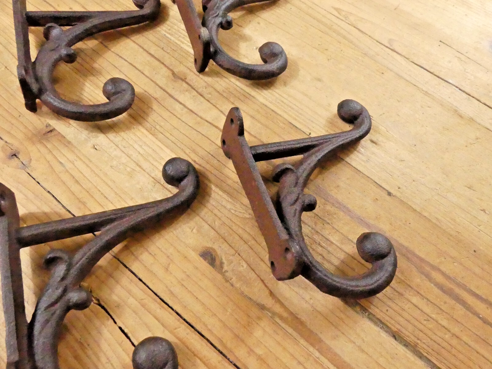 4 BROWN DOUBLE CAST IRON HOOKS!