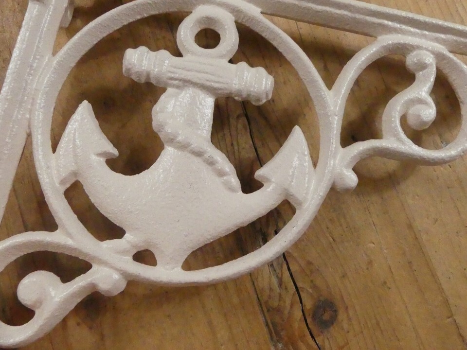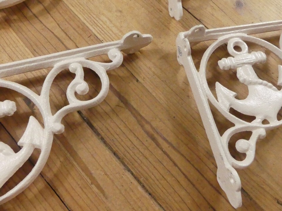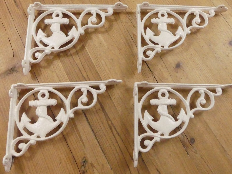 - 4 CAST IRON BOAT ANCHOR BRACKETS CORBELS WALL SHELF BRACKET NAUTICAL CREAM WHITE