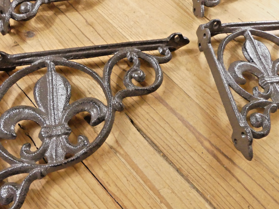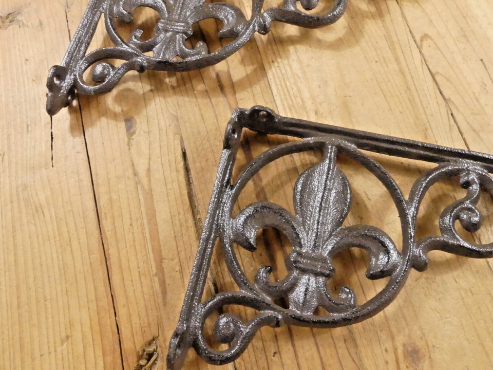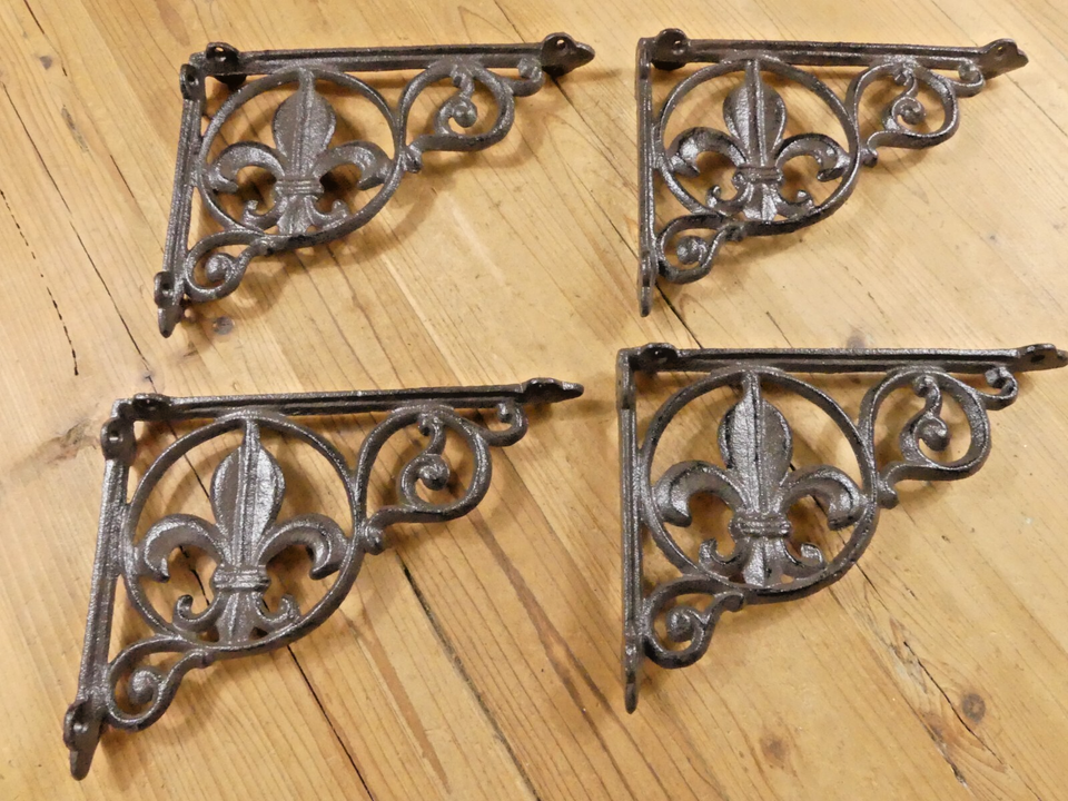 - 4 Cast Iron Shelf Brackets Fleur De Lis French Bookshelf Corbels Book Wall Gras