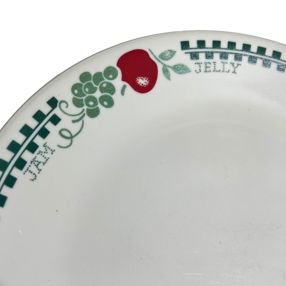 Corelle Farm Fresh Dinner Plate. Checkered Border With Apples And Other Fruit. Farm Fresh Homemade Jam Jelly Featured In Design. Pattern Was Available From 1997 To 2007.