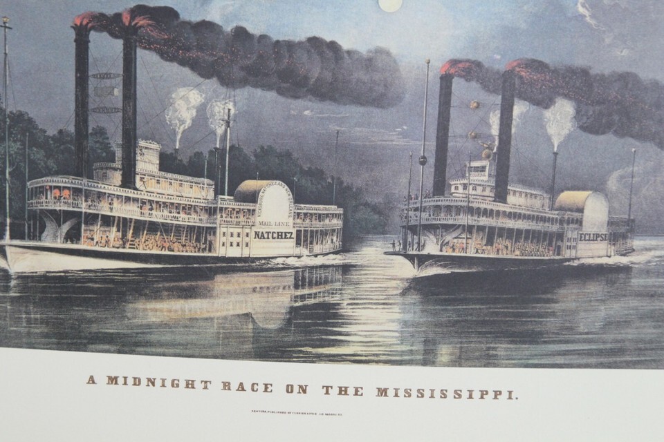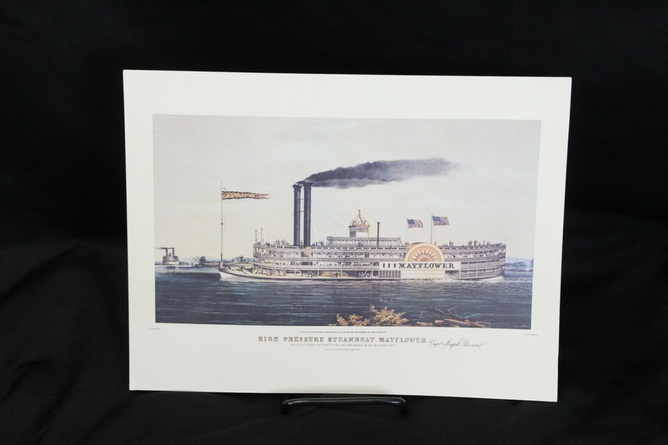 - 4 Currier & Ives Steamboat Prints Midnight Race Columbia Mayflower Drew St John