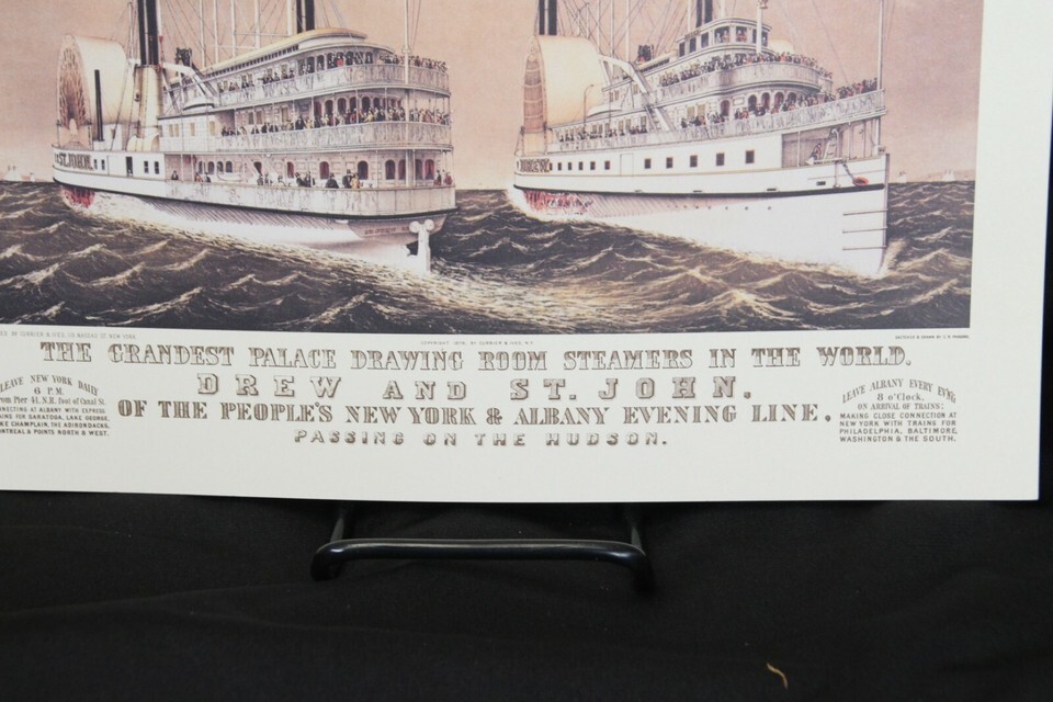 4 Currier Ives Steamboat Prints Midnight Race Columbia Mayflower Drew St John