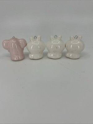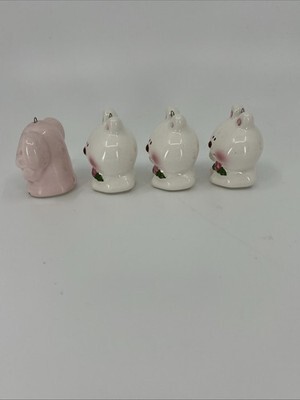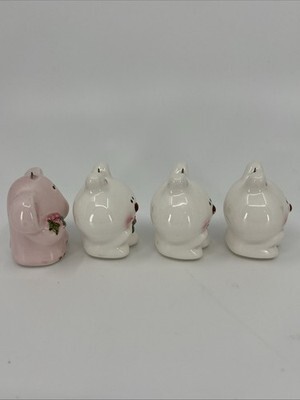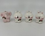 - 4 Cute VTG Ceramic Pink Elephant & White Bunnies, PAPEL PET PALS, JAPAN, 2” Tall