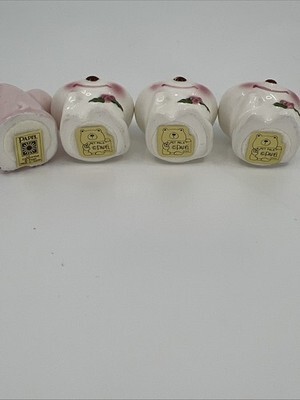 4 Cute VTG Ceramic Pink Elephant & White Bunnies, PAPEL PET PALS, JAPAN, 2” Tall