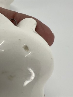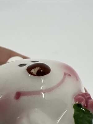 Great condition. No chips no cracks nothing broken. See pictures for details and measurement. There is a spot on one of the bunnies nose. It is not a chip. It is where the manufacturer missed a spot painting, but it is glazed.