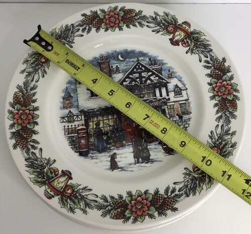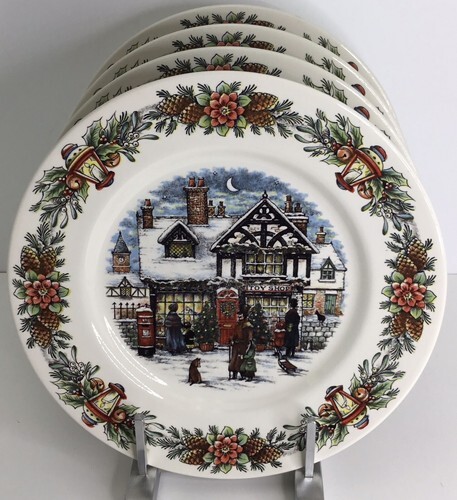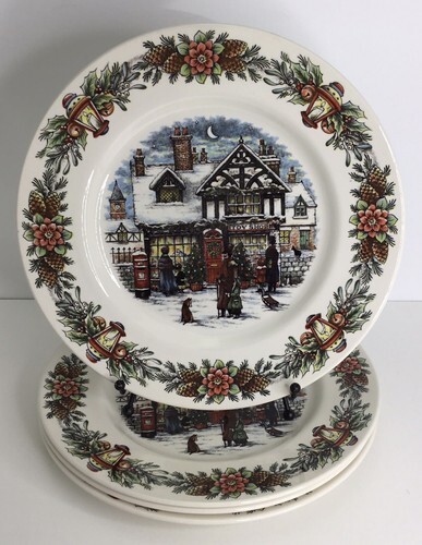 4 Dinner Plates 11? Royal Stafford Christmas Toy Shop Winter Snow NEW