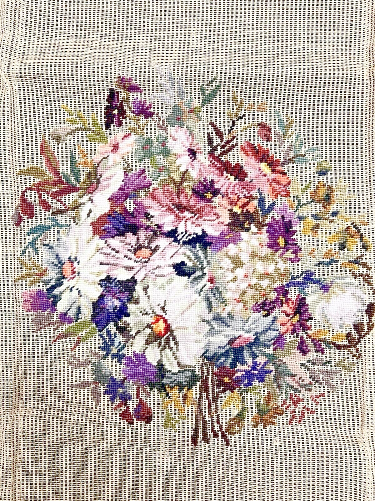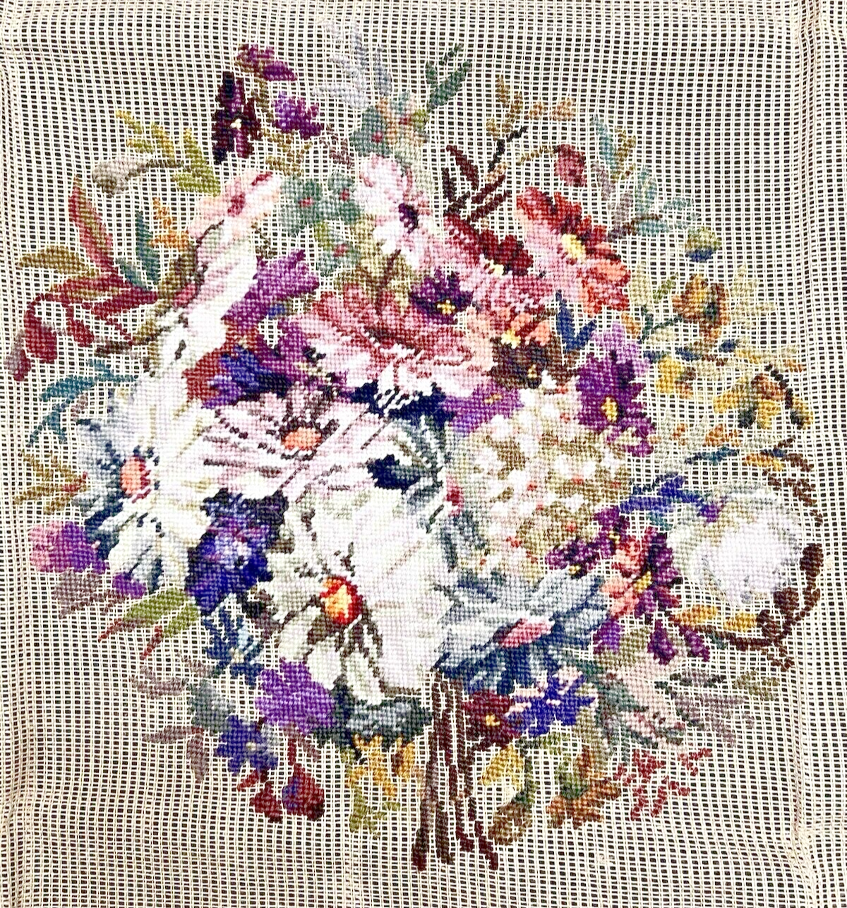- 4 Four Wives Needlepoint Unworked Canvas Floral Design 23 x 23" Purple Daisies