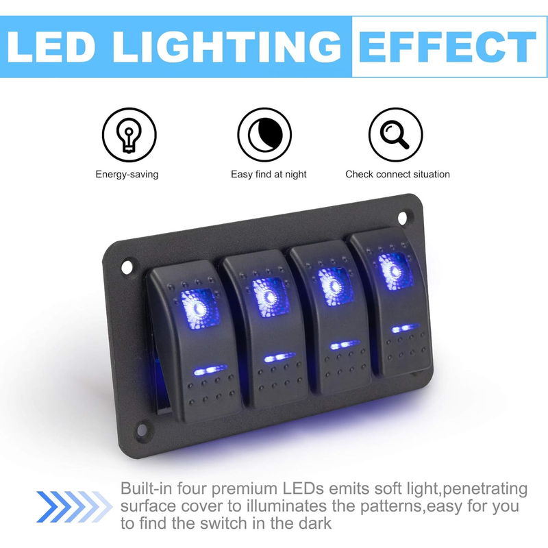 - 4 Gang Rocker Switch Aluminum Panel with Blue LED Light Waterproof