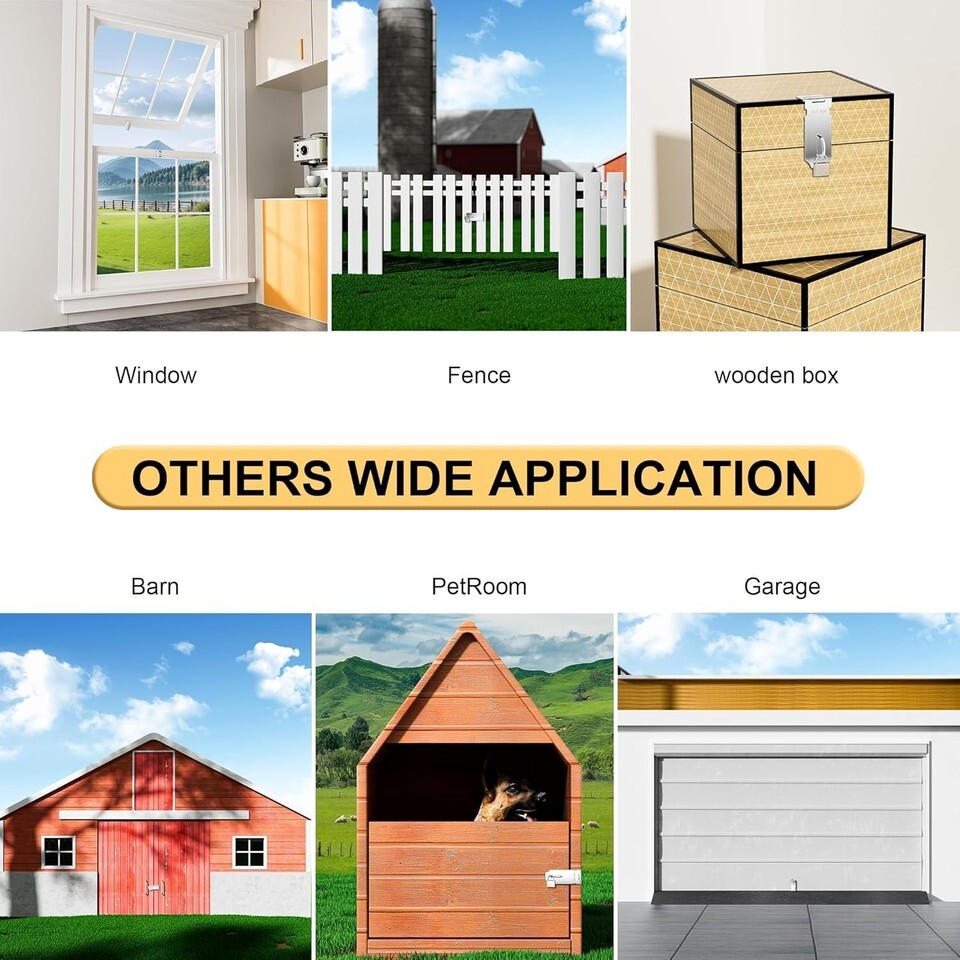 Easy to Install: Quick and straightforward installation process in just a few minutes, suitable for various applications including cabinets, wardrobes, fences, drawers, barns, boxes, outdoor structures, windows, and sliding doors.