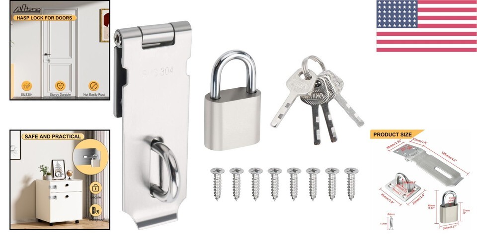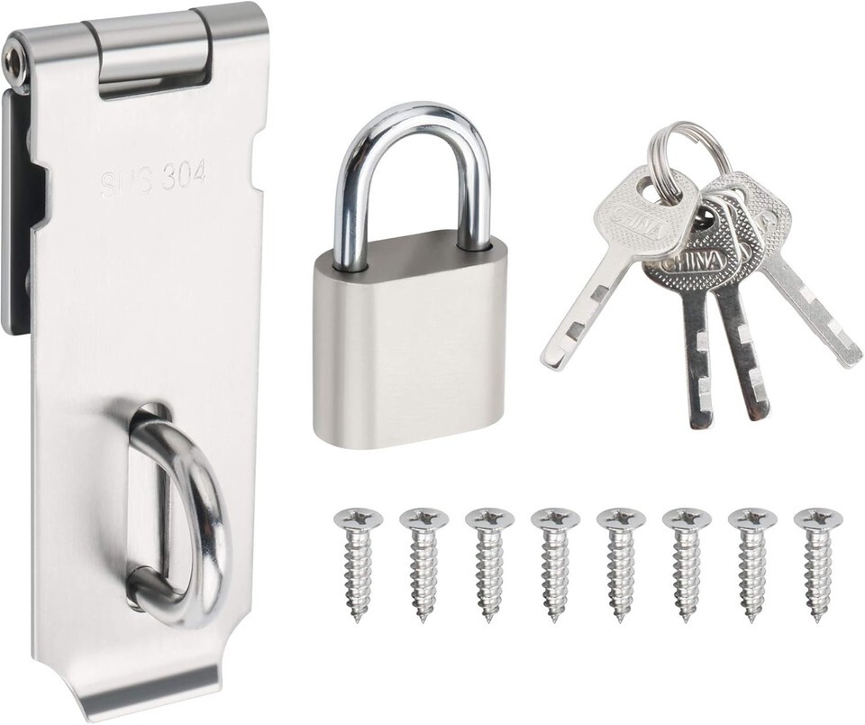- 4-Inch Stainless Steel Hasp Lock with Padlock - Enhanced Safety Solution