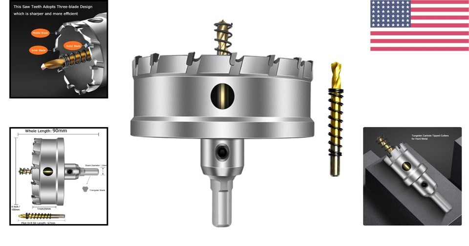 Experience the blend of durability and efficiency with our 4-Inch Tungsten Carbide Tipped Hole Saw Drill Bit Set. Designed with professional-grade materials and an innovative three-blade design, this set empowers you to tackle even the toughest of drilling tasks with ease. Whether you are a DIY enthusiast or a seasoned professional, this multipurpose tool is your go-to solution for drilling hard metals and more.