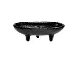 Gloss black finish on cast iron. Use for burning incense sticks in the 3 hold section. You can add a charcoal disc for other style resins or powdered incense. Finish may burn off with items other than stick incense. Add sand to help protect finish if other items are burned. Cast iron. 3"