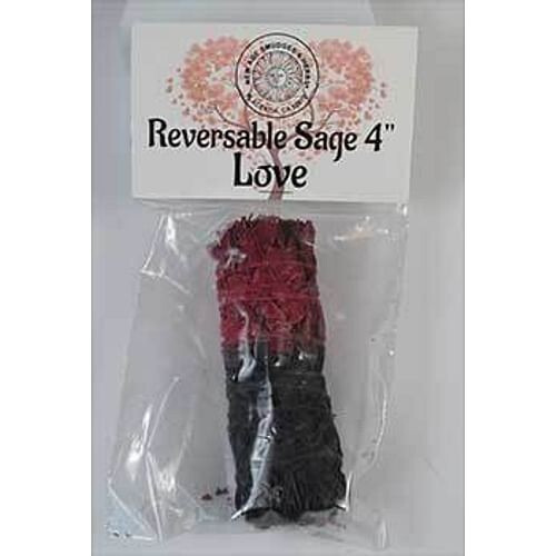 This reversible 4" sage is a unique smudging process for cleansing and energizing your space. This dual-colored sage bundle is red on one side and black on the other. Burn the black side first to get rid of negative energy, and then continue to burn through the red side to attract love. Full instructions on inside of label.